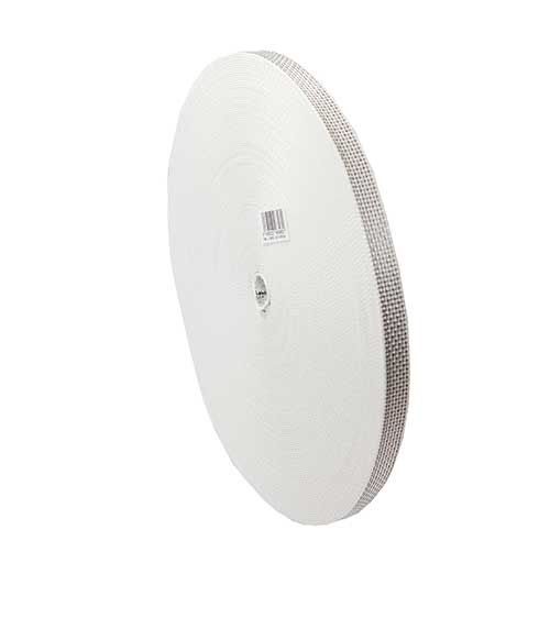 Cinta para persiana de microfibra entrelazada de alta resistencia y gran durabilidad. Acabado brillante Ancho 16 mm. Colores, Blanca con puntitos negros, marrón o negra.