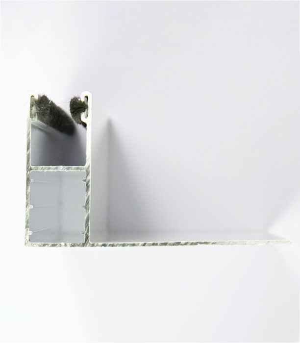 La guía de aluminio extrusionado lacado en blanco es necesaria cuando se quiere substituir las lamas de PVC por las de aluminio. La guía incluye felpudo y se introduce dentro de la guía galvanizada instalada en la obra. Modelo con ala de longitud 100cm .