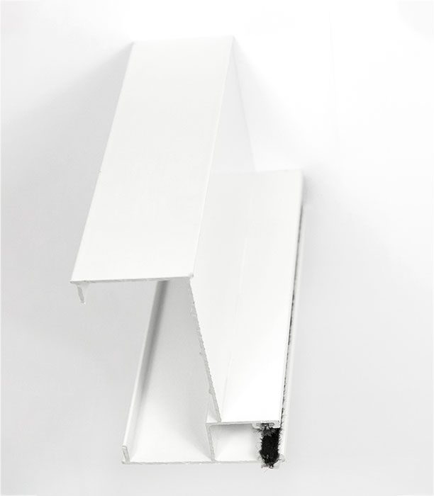 La guía de aluminio extrusionado lacado en blanco es necesaria cuando se quiere substituir las lamas de PVC por las de aluminio. La guía incluye felpudo y se introduce dentro de la guía galvanizada instalada en la obra. Modelo con cajón para recogedor y longitud de 93cm.