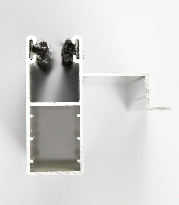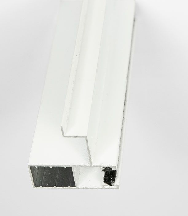 Le guide en aluminium extrudé laqué en blanc est nécessaire lorsque vous souhaitez remplacer les lames en PVC par celles en aluminium. Le guide comprend un joint en feutre et est conçu avec une aile, située dans le caisson supérieur, d'une longueur de 47 cm.