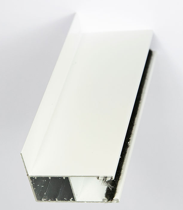 The aluminum guide laquered in white is necessary when substituting the blind’s PVC slats for aluminum ones. The guide includes blind’s mat and is introduced inside the galvanized guide installed in the original construction. Model with 40cm long wing.