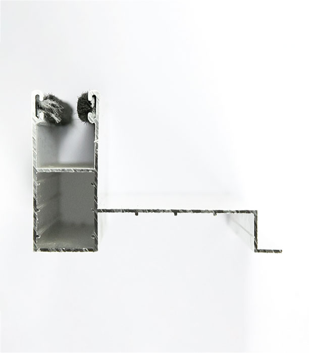 The aluminum guide laquered in white is necessary when substituting the blind’s PVC slats for aluminum ones. The guide includes blind’s mat and is introduced inside the galvanized guide installed in the original construction. Model with 74cm long wing situated in the lower box.