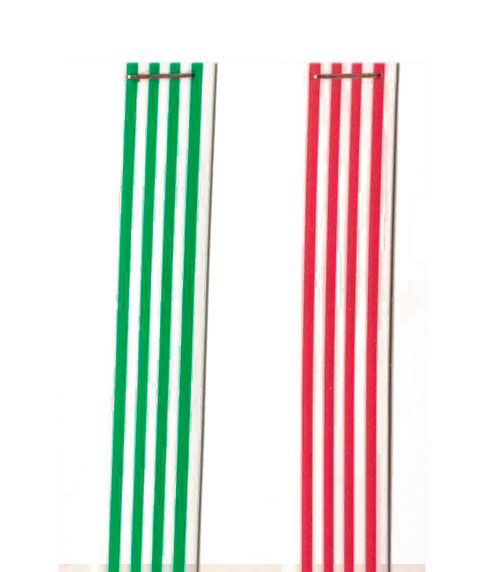 Bicolored plastic straps curtain in three models (blue-white, red-white and green-white).