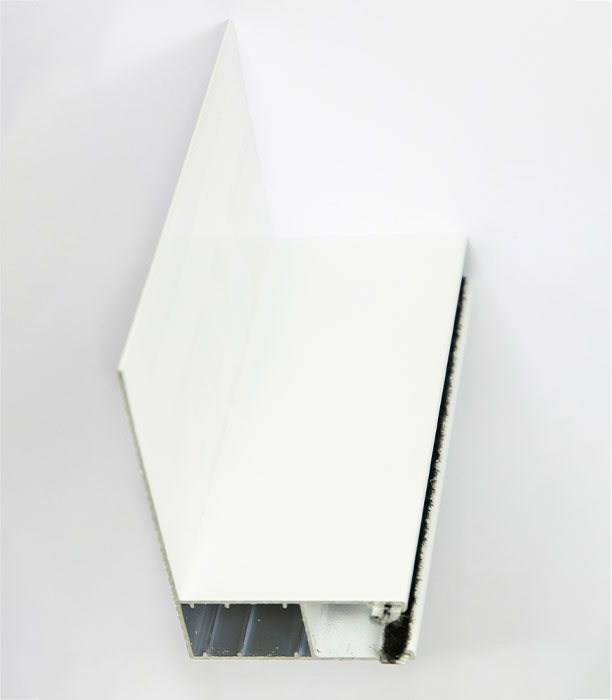 The aluminum guide laquered in white is necessary when substituting the blind’s PVC slats for aluminum ones. The guide includes blind’s mat and is introduced inside the galvanized guide installed in the original construction. Model with 100 cm. long wing.