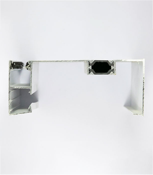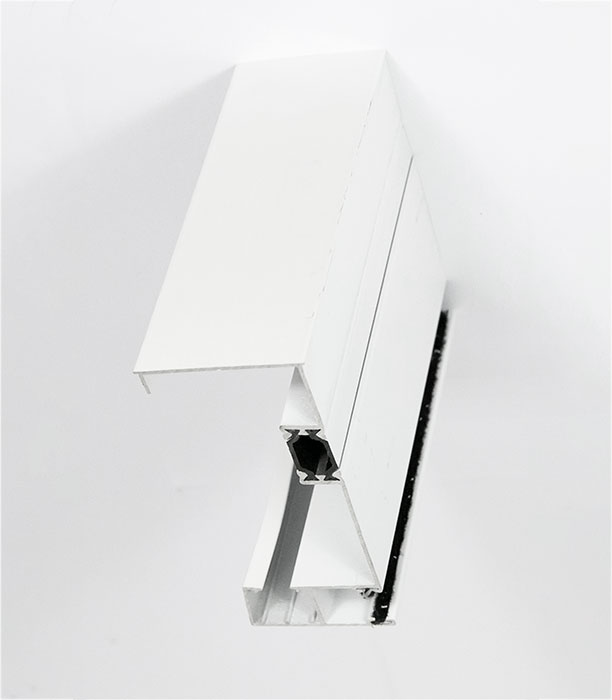 The aluminum guide laquered in white is necessary when substituting the blind’s PVC slats for aluminum ones. The guide includes blind’s mat and is introduced inside the galvanized guide installed in the original construction. Model with coiler box included, thermal break for thermal insulation and 140cm long wing.