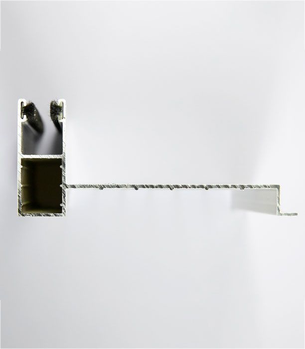 The white lacquered extruded aluminum guide is necessary when you want to replace PVC slats with aluminum slats. The guide includes a weather strip and is inserted into the galvanized guide installed in the construction. Model with a wing located in the upper box of length 112cm.