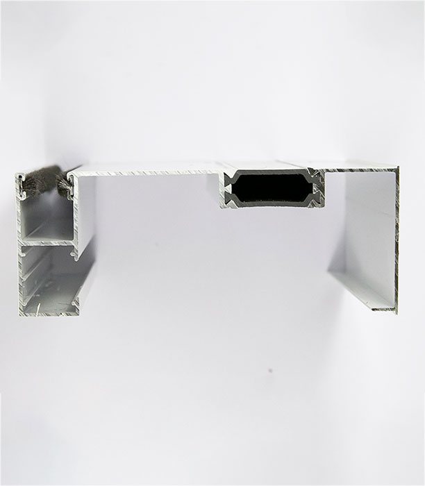 The white lacquered extruded aluminum guide is necessary when you want to replace PVC slats with aluminum ones. The guide includes a brush seal and is inserted into the galvanized guide installed on-site. Model with a drawer for the sweeper and a length of 160 cm with thermal break for insulation