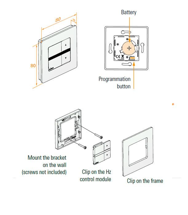 Elegant wall-mounted control for the roller shutter motor, discreet and modern, this new transmitter seamlessly blends into any kind of decor. A collection of frames with stylish colors and decorations allows you to customize the wall transmitters and add a unique touch to your decor.