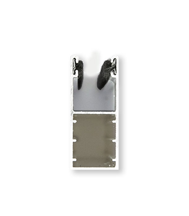 La guía de aluminio extrusionado lacado en blanco es necesaria cuando se quiere substituir las lamas de PVC por las de aluminio. La guía incluye felpudo y se introduce dentro de la guía galvanizada instalada en la obra. Modelo sin ala.