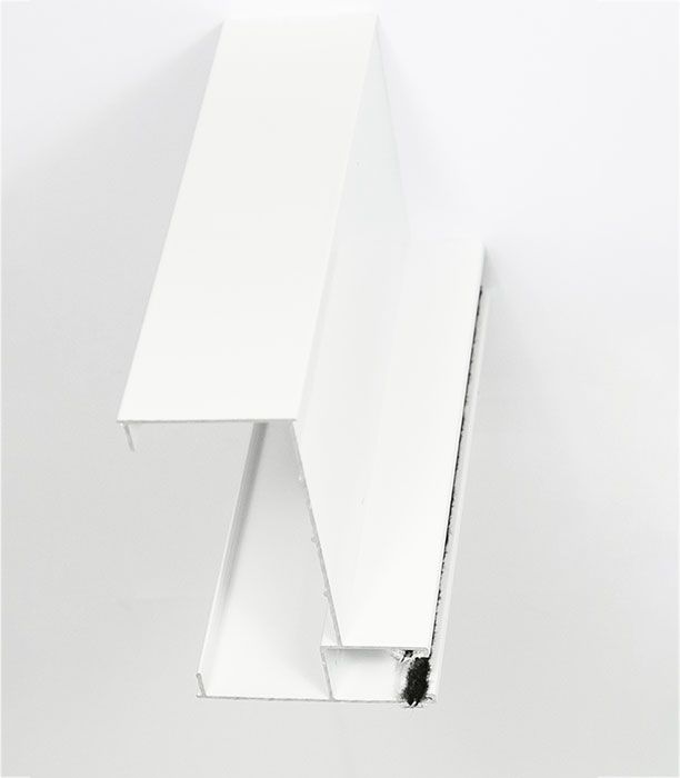 La guía de aluminio extrusionado lacado en blanco es necesaria cuando se quiere substituir las lamas de PVC por las de aluminio. La guía incluye felpudo y se introduce dentro de la guía galvanizada instalada en la obra. Modelo con cajón para recogedor y longitud de 100cm.