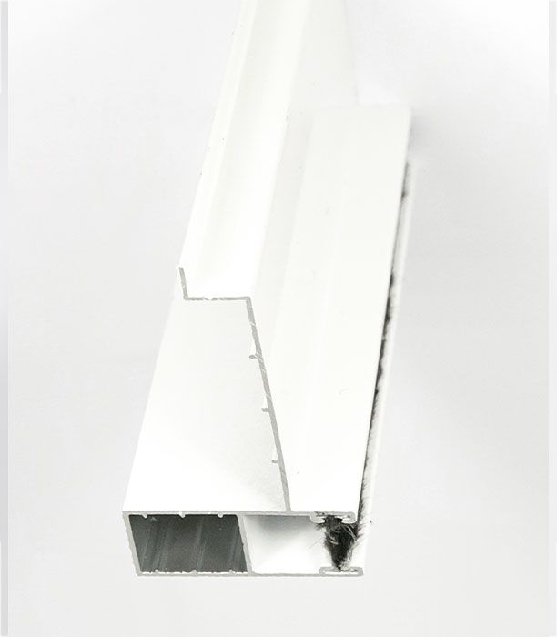 La guía de aluminio extrusionado lacado en blanco es necesaria cuando se quiere substituir las lamas de PVC por las de aluminio. La guía incluye felpudo y se introduce dentro de la guía galvanizada instalada en la obra. Modelo con ala** situada en el cajón superior** longitud 74cm.