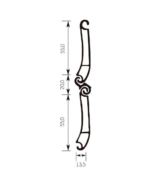 Profil de lame incurvé. Avec une épaisseur de 13,5 mm et un espacement entre les lames de 65,5 mm. Supporte un poids approximatif de 11,80 kg/m² et une hauteur de lame par mètre linéaire de 15 mm.