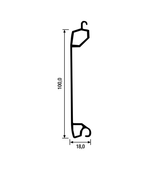 Lame avec profil courbe de 100 mm. Avec une épaisseur de 18 mm et une distance entre les lames de 100 mm. Supporte un poids approximatif de 10 kg/m² et une hauteur de vantail par mètre linéaire de 10 cm.
