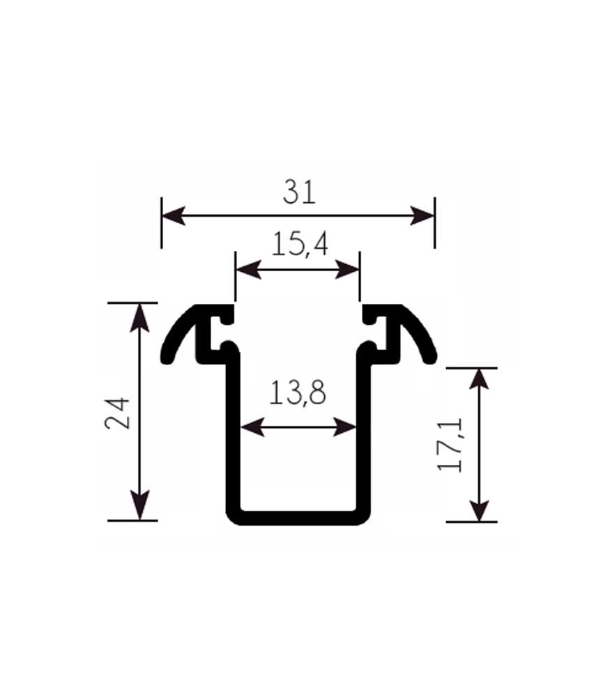 Guide en aluminium pour aluminium avec ailette de 15 mm de largeur et 26 mm de profondeur.